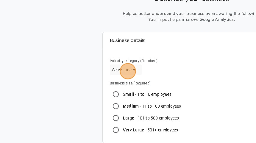 7. اختر مجال نشاطك من القائمة المنسدلة Industry Category