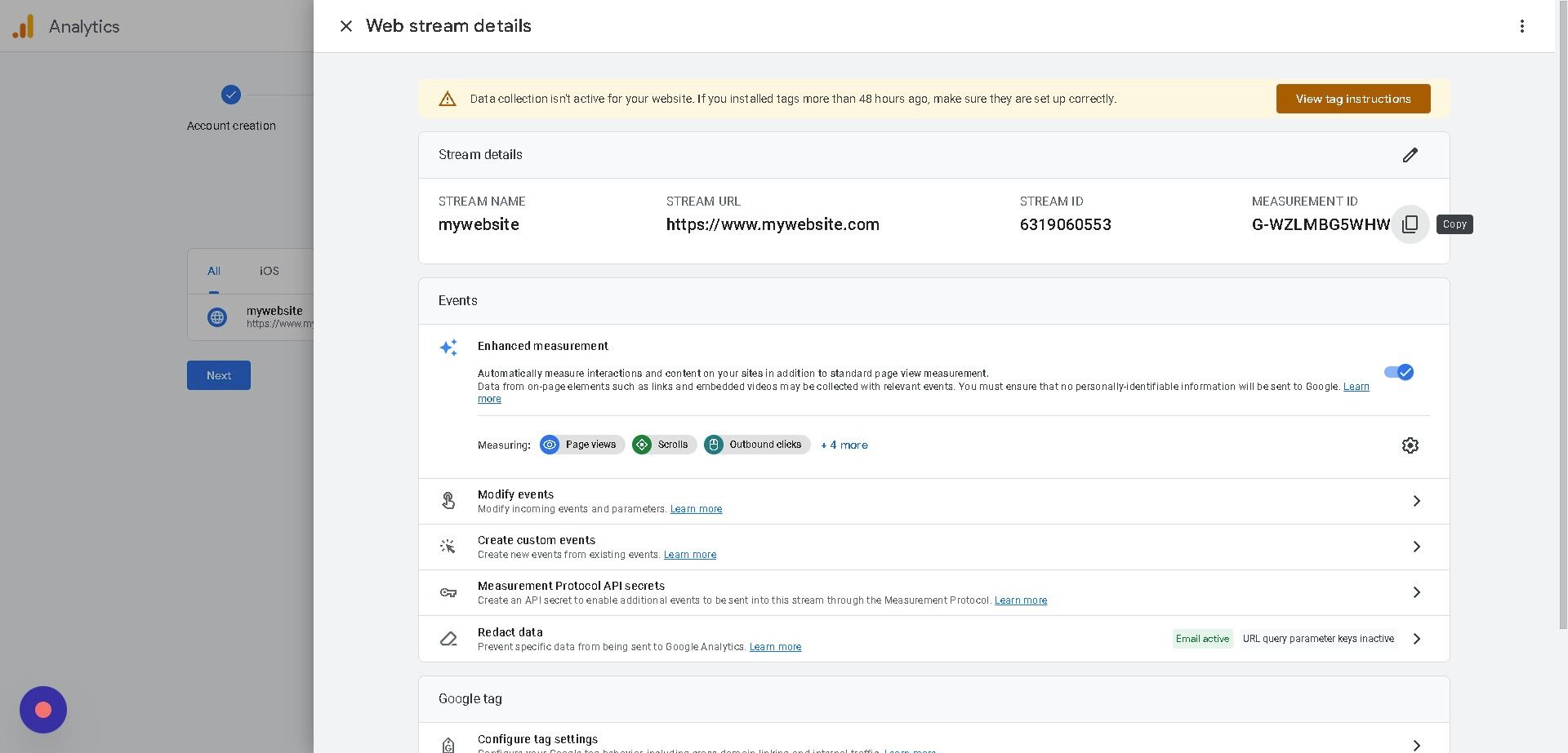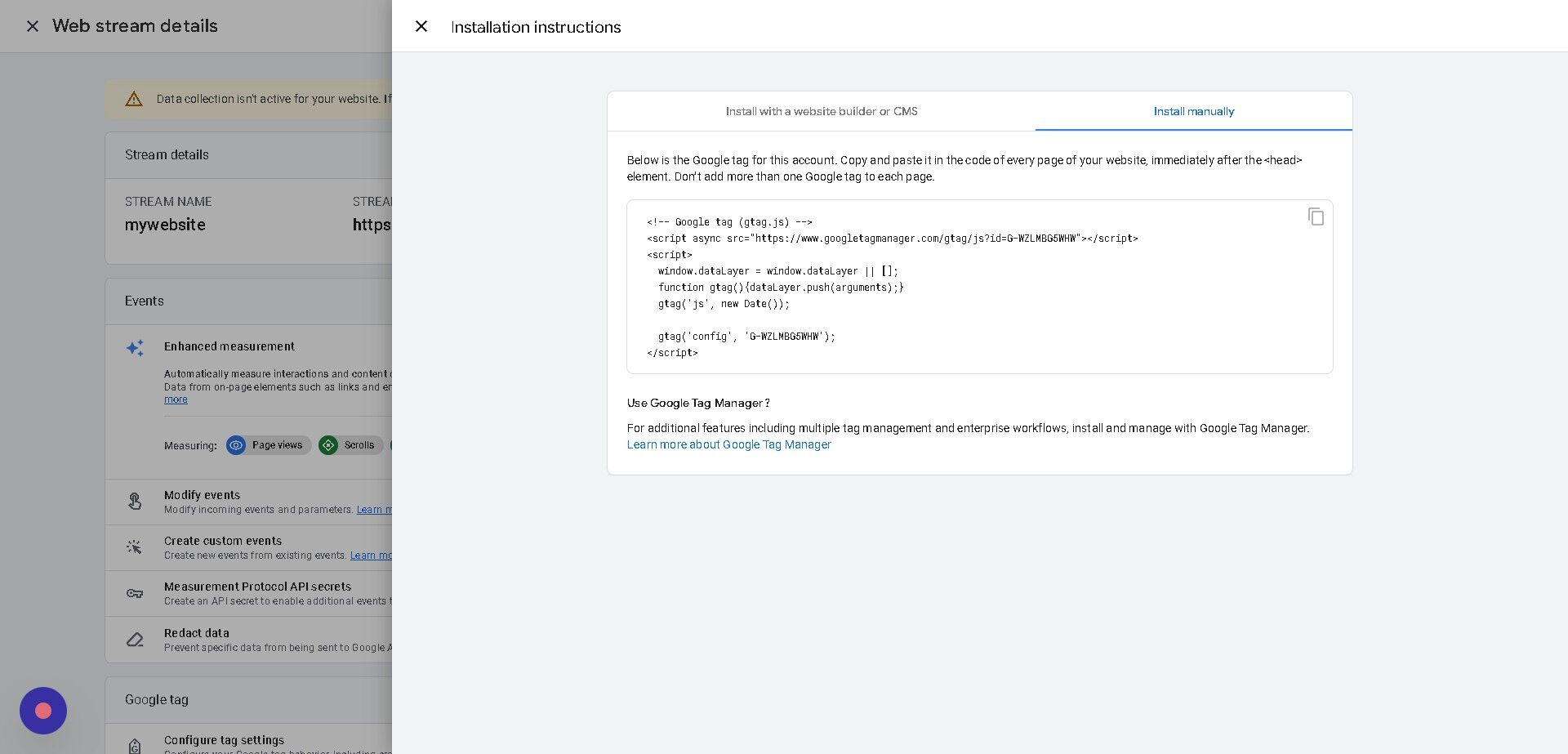 22. قم بلصق الرمز الذي قمت بنسخه في خانة إحصائيات جوجل
