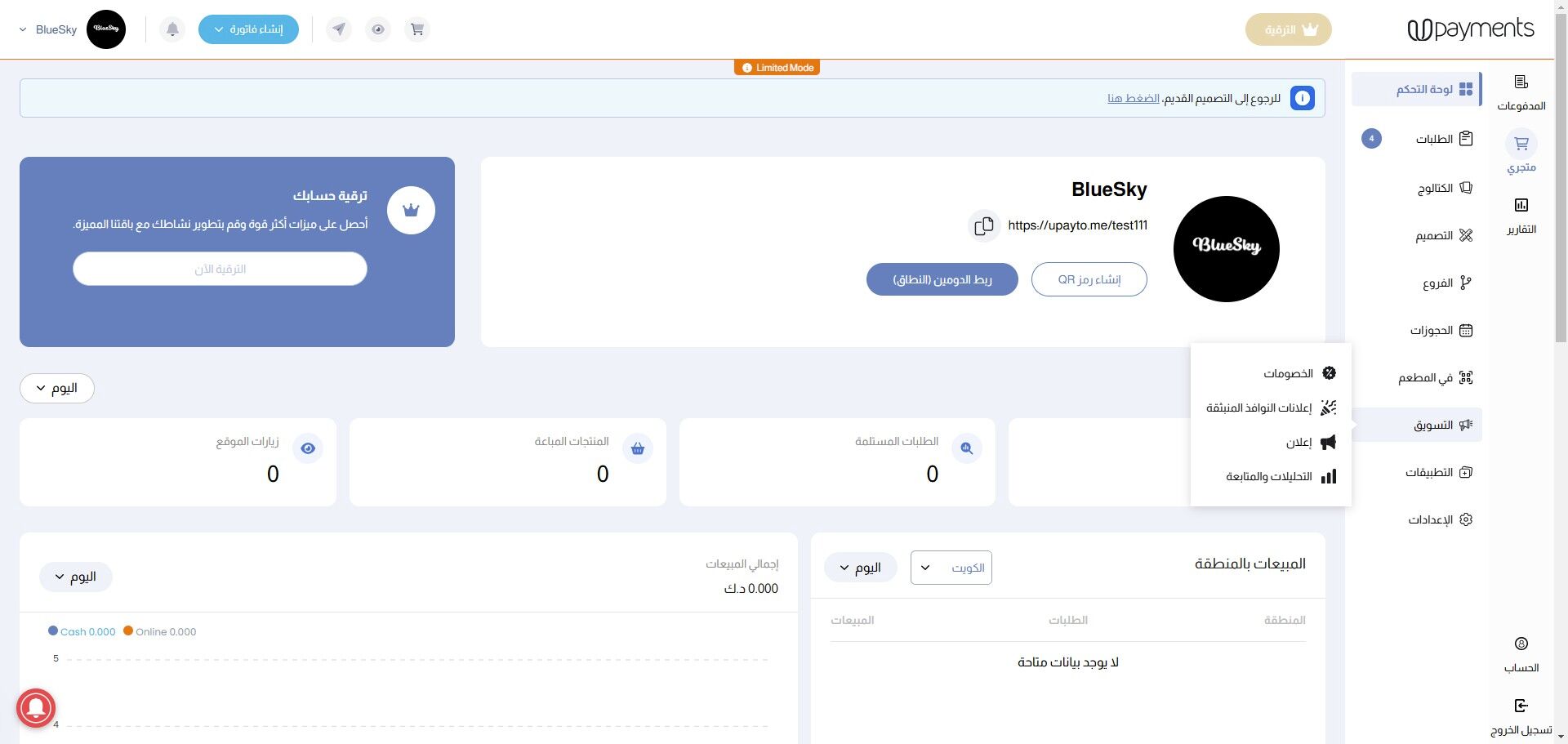 18. توجه إلى لوحة تحكم التاجر من يوبيمنتس