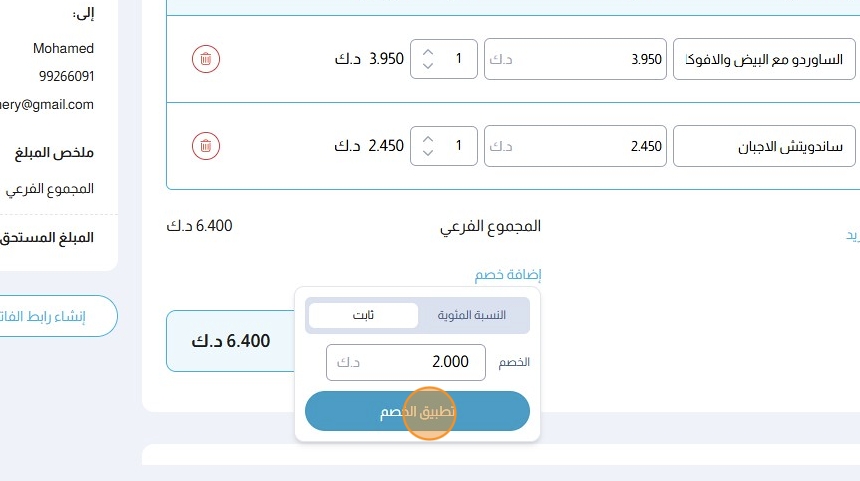 16. اضعط على إضافة خصم لإضافة خصم على فاتورتك