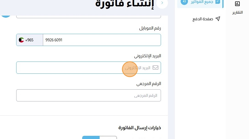 38. إذا قمت بإدخال البريد الإلكتروني سيتم إرسال الفاتورة للعميل عن طريق البريد الإلكتروني