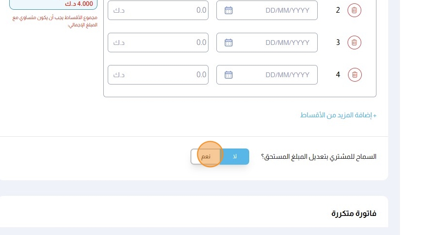 25. إن كنت تريد إضافة خطة دفع للفاتورة, اضغط نعم