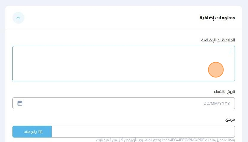 24. تحت معلومات إضافية اضف المعلومات التالية: