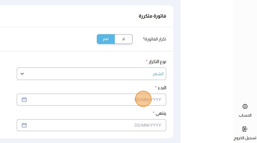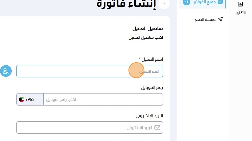 1. اضغط على إنشاء فاتورة في قسم المدفوعات