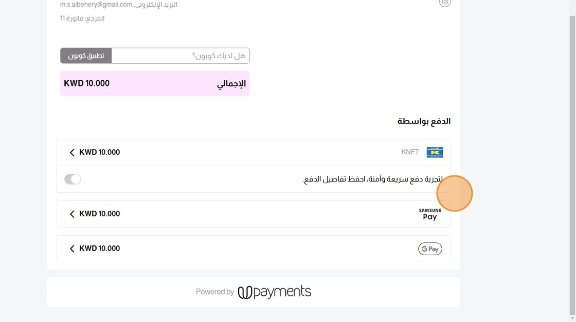 40. سيتمكن عملائك من دفع الفاتورة باستخدام وسائل الدفع التي قمت بإتاحتها