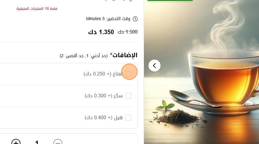 9. اختيار تطبيق على كمية كل اختيار سيقوم بإضافة اختيارات الكمية لكل صندوق اختيار لإضافة كمية من كل صندوق حيث سيتم تطبيق إعدادات الحد الأدنى والأقصى من الإختيارات على العدد الكلي الذي يتم اختياره لكل الصناديق