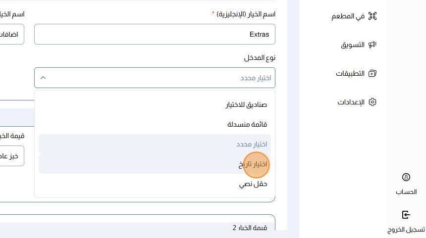 5. بناءً على طبيعة الخيار الذي تريد إتاحته, يمكنك اختيار نوع المدخل