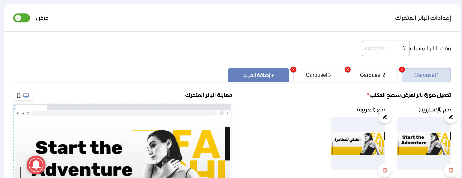 البانر المتحرك: أطلق سلسلة لحملات مثل "عروض الأعياد" أو أبرز خط إنتاج جديد.