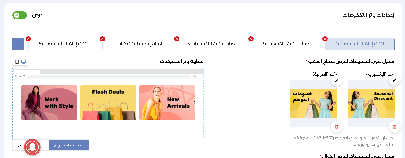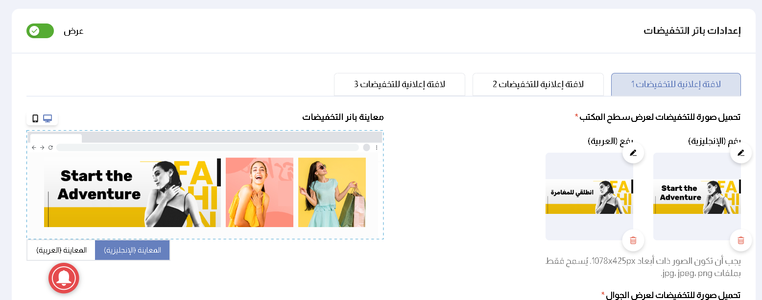 التوطين: تأكد من إعداد البانرات باللغتين العربية والإنجليزية.