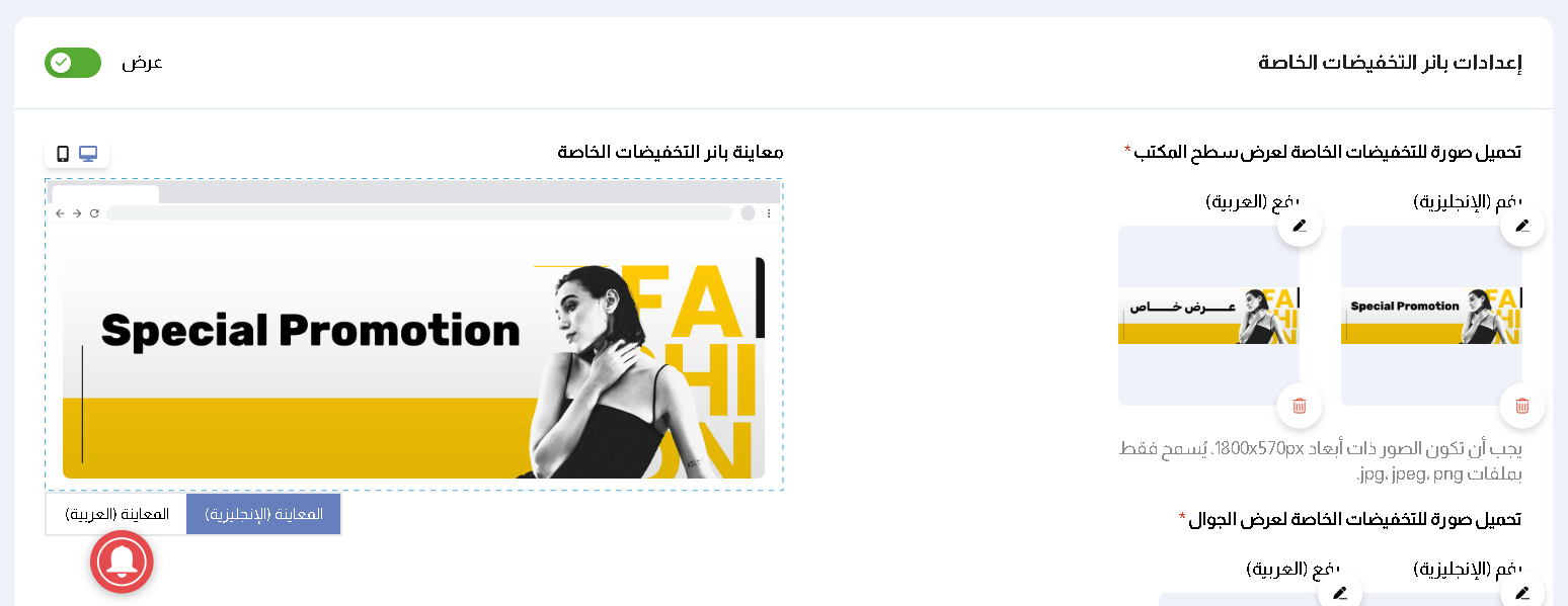 يختلف بانر التخفيضات حسب التنسيق المستخدم.
