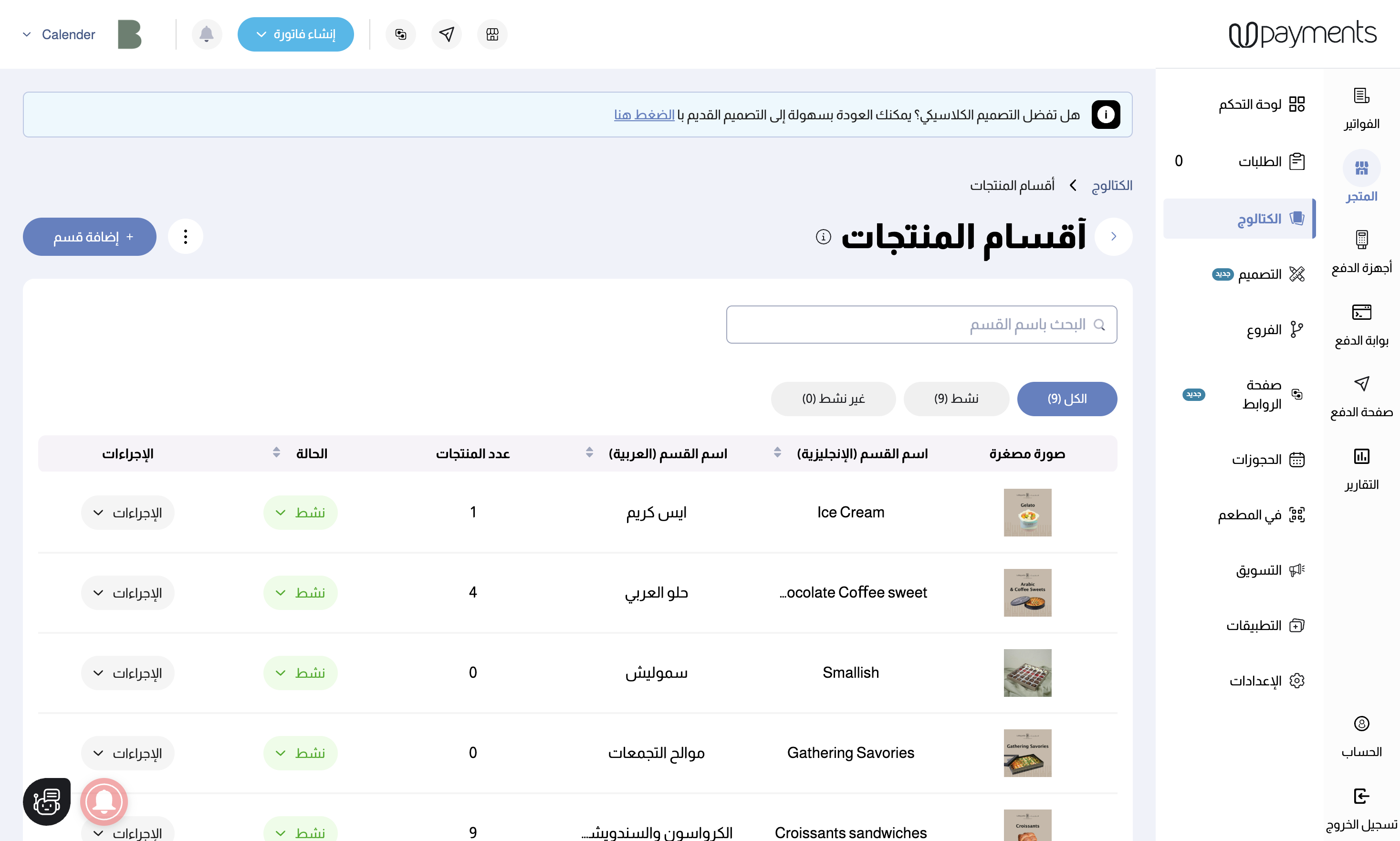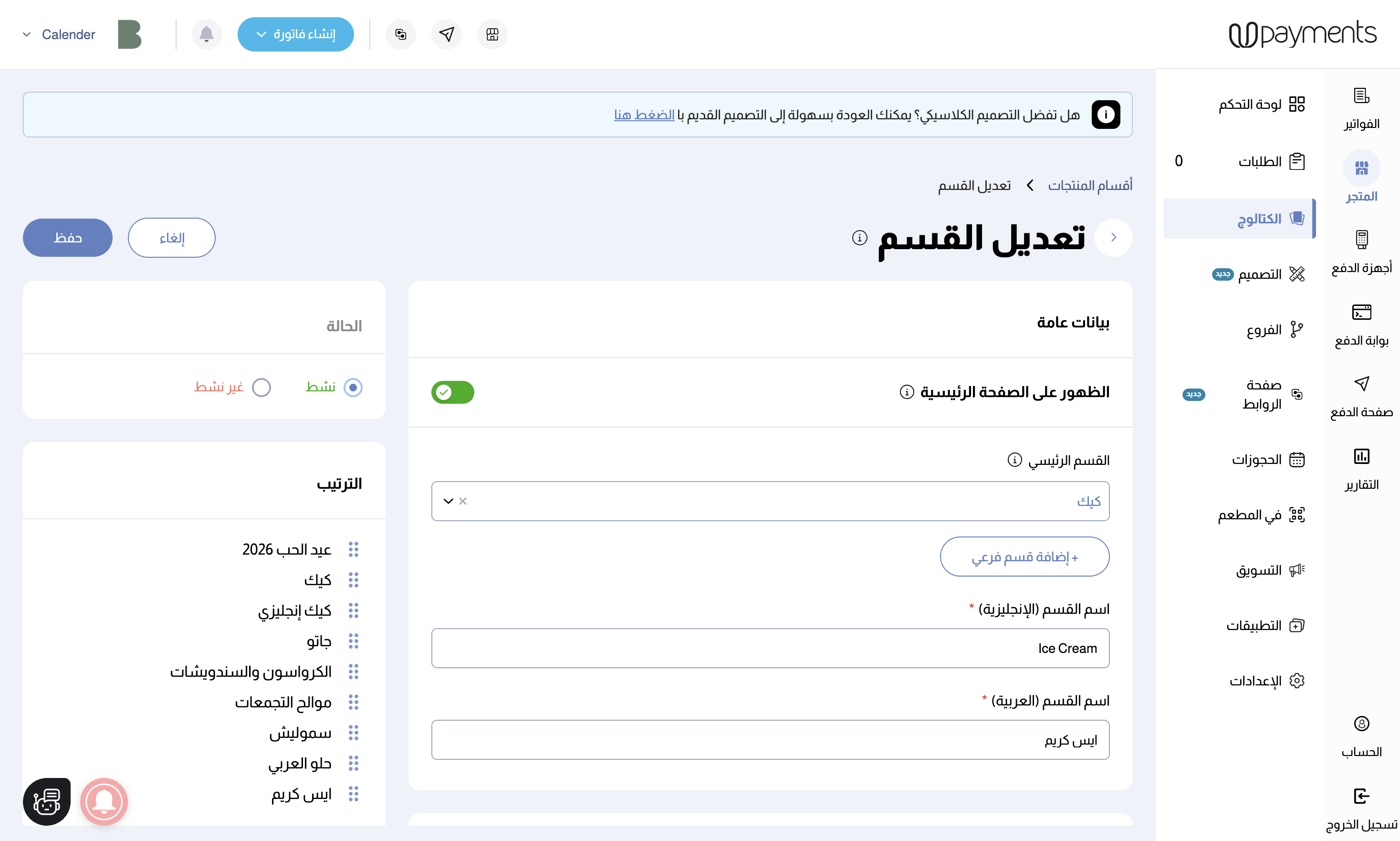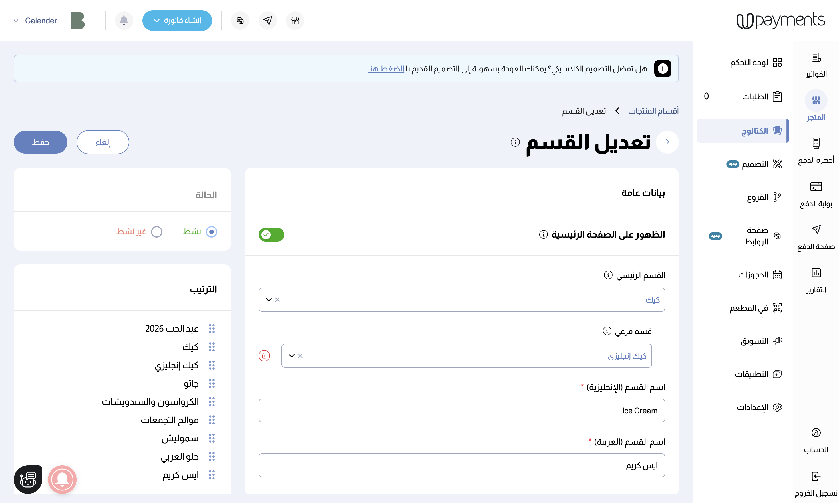 باتباع هذه الخطوات، ستحتوي أقسام المنتجات على أقسام رئيسية وأقسام فرعية تحتها.