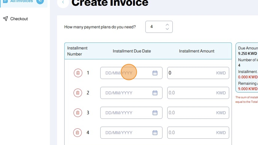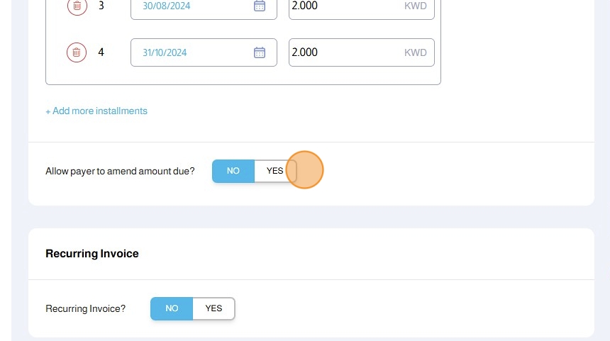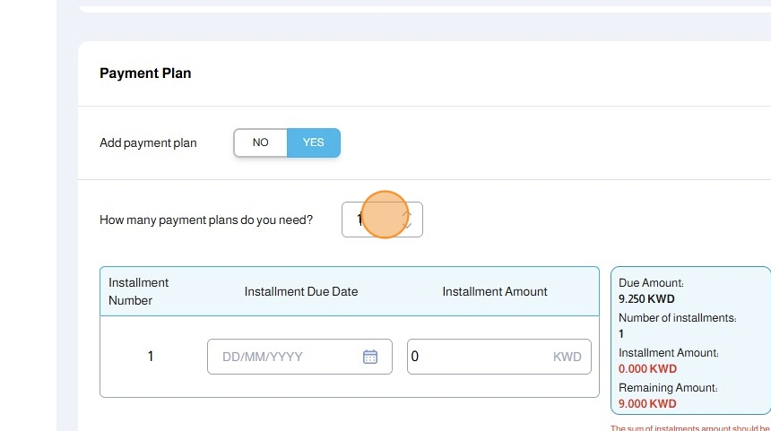 25. If you want to split the invoice payment, enable the Payment Plan option