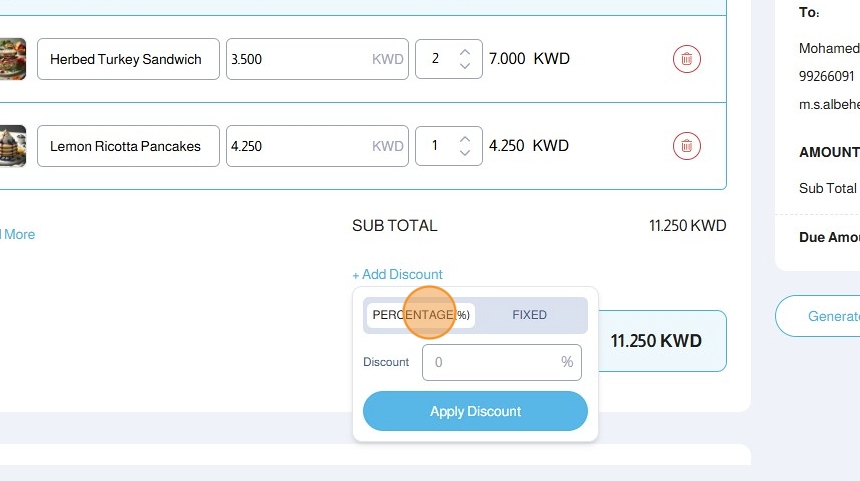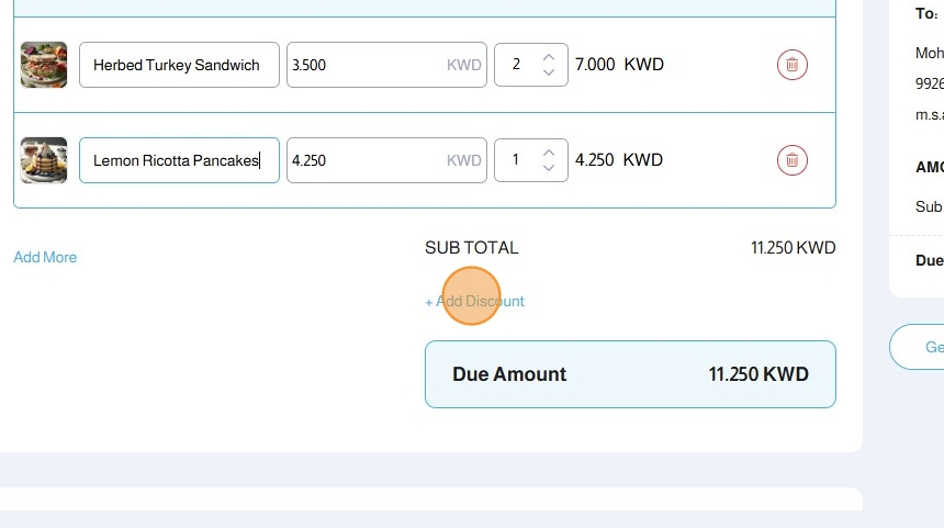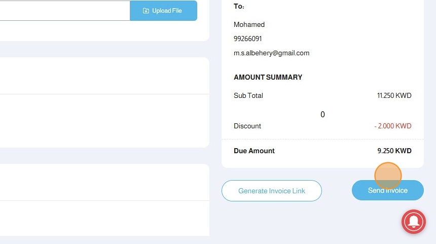 - Send SMS to send the invoice to the customer via Whatsapp and SMS