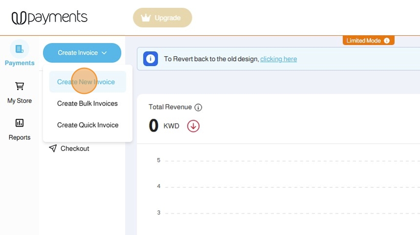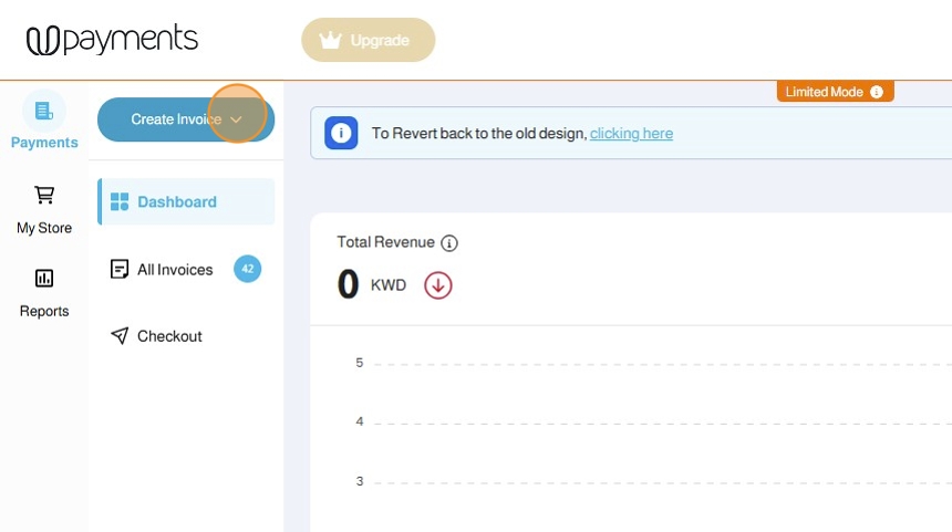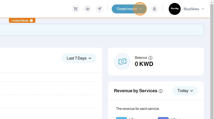 2. OR Create Invoice in the top right side at any section in the merchant dashboard