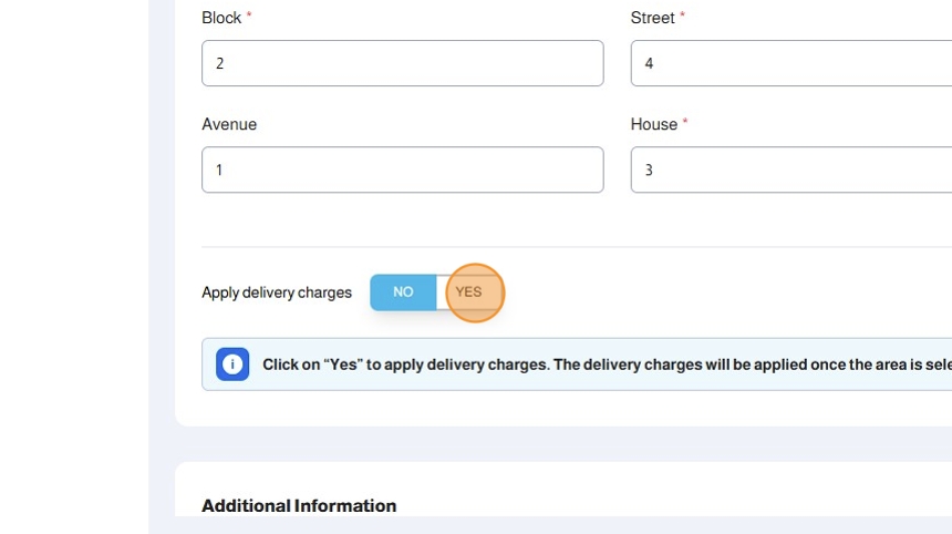 22. If you want to apply delivery charges, choose YES for Apply Delivery Charges