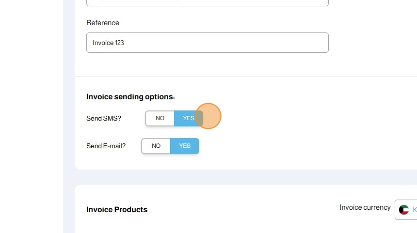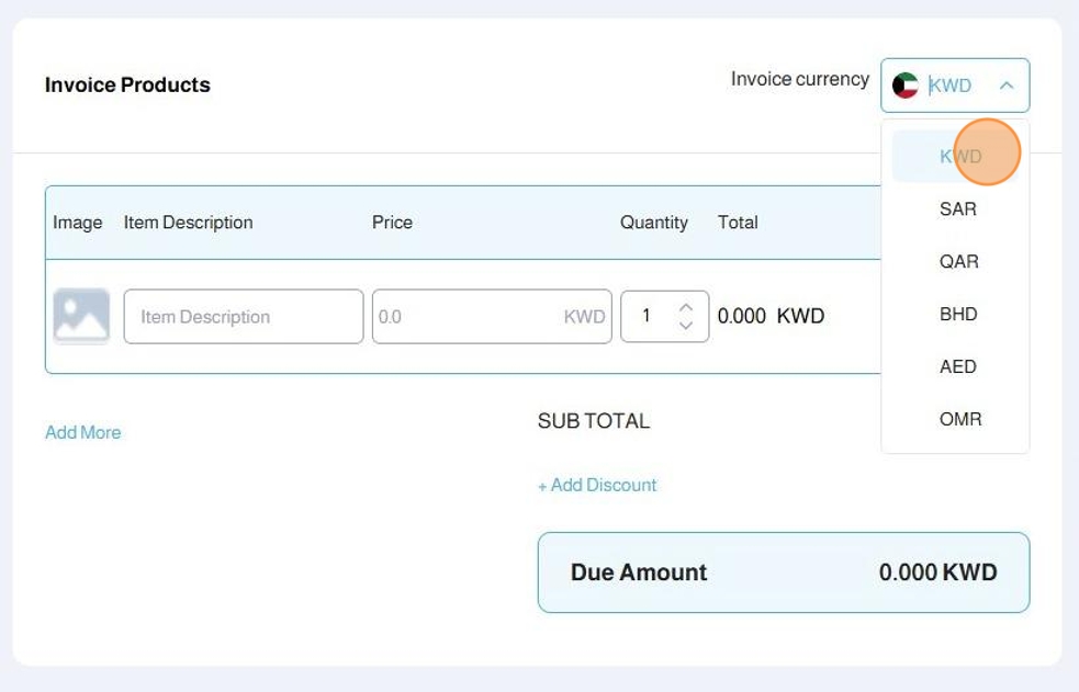 11. Under the Invoice Products section, choose the desired currency from the Invoice Currency drop-down