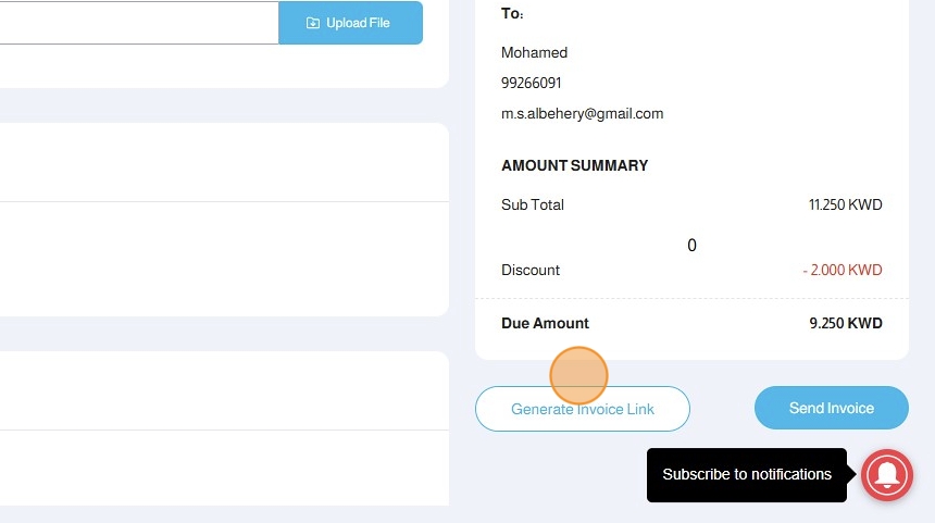 35. Click Generate Invoice Link to generate the invoice without sending it to the customer