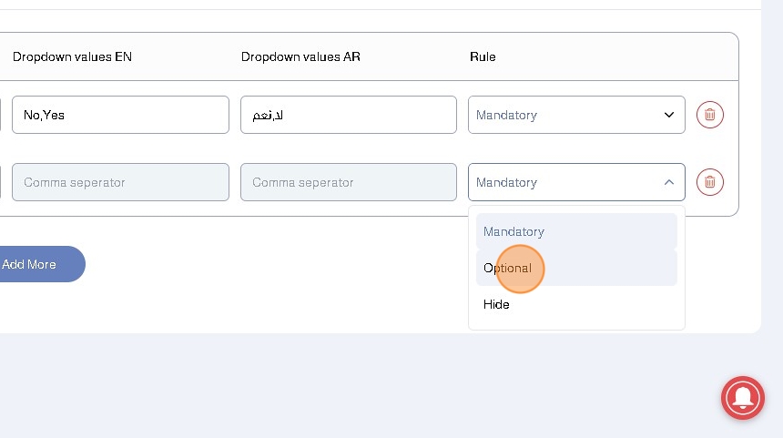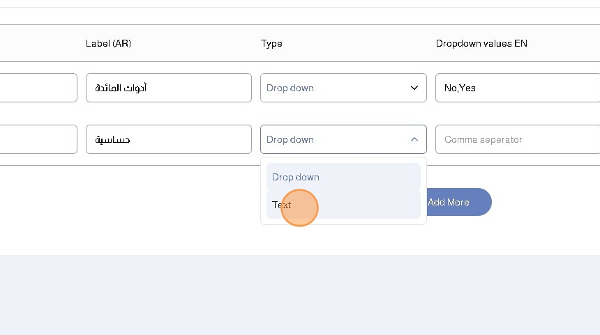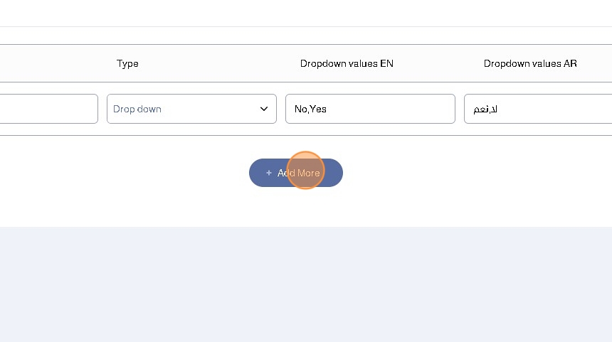 9. For the Drop Down Type Enter the English and Arabic Drop Down Values separated by a comma ","