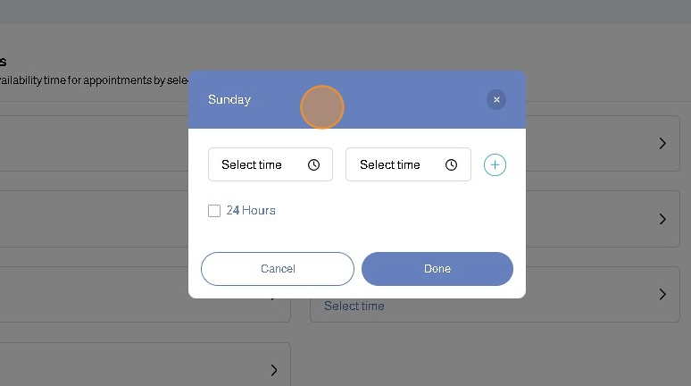 9. For each day, you can select the starting and ending time and add time slots or choose 24 Hours