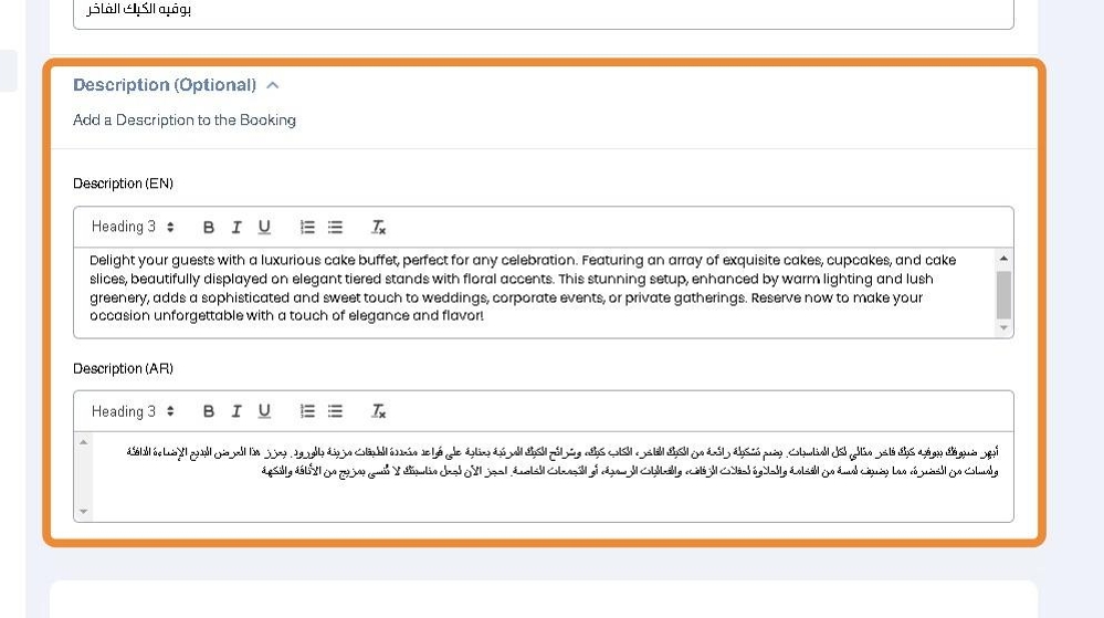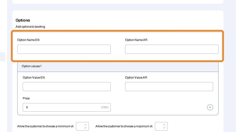 - Booking Fee (KWD): The main fee that will be paid for this booking. All other associated fees will be added to this fee.