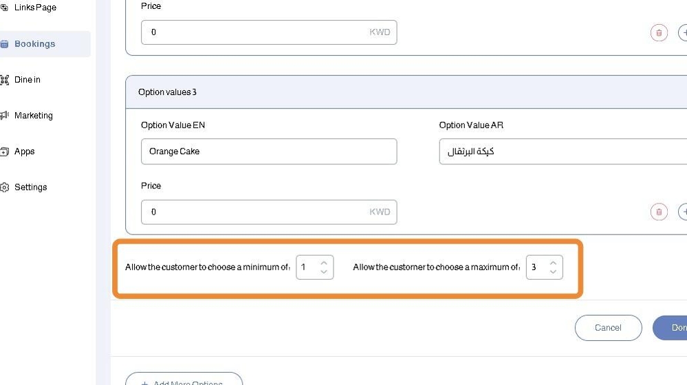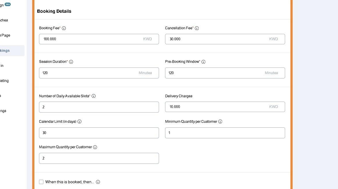 - Cancellation Fee (KWD): The fees that will be withheld by the merchant in case the customer cancelled the booking