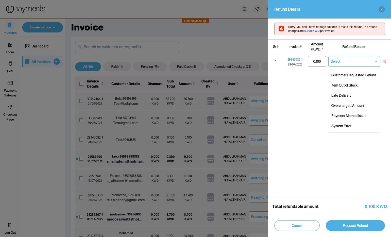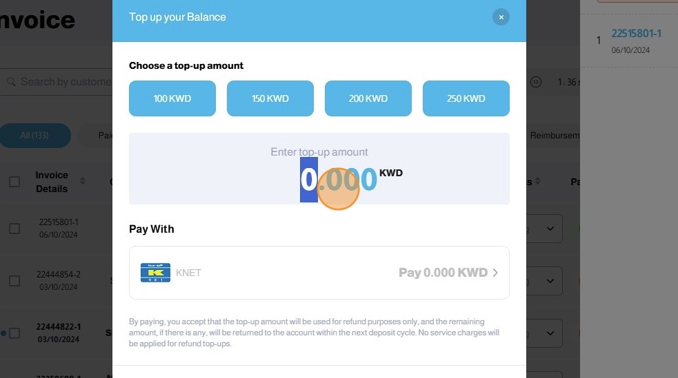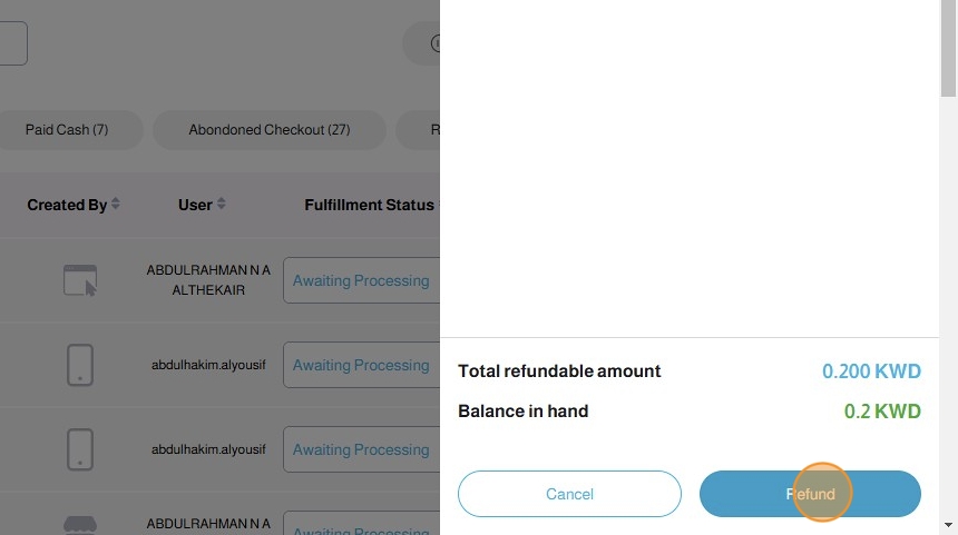 Option 2: Enter the Refund Amount to be less than 10 KWD - For Example: 5 KWD (Partial Refund)