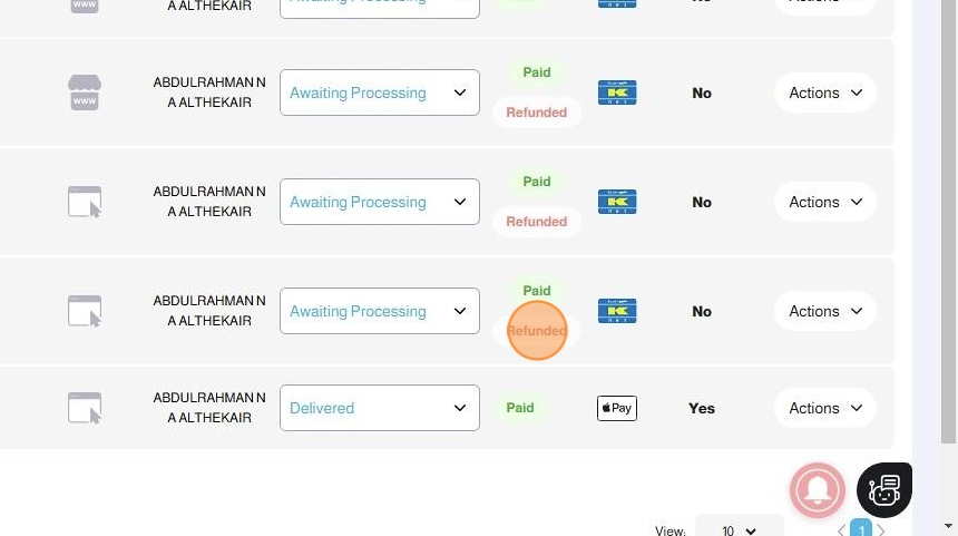 12. In the Refunds Page, you can view all refund requests and their statuses as follows:
