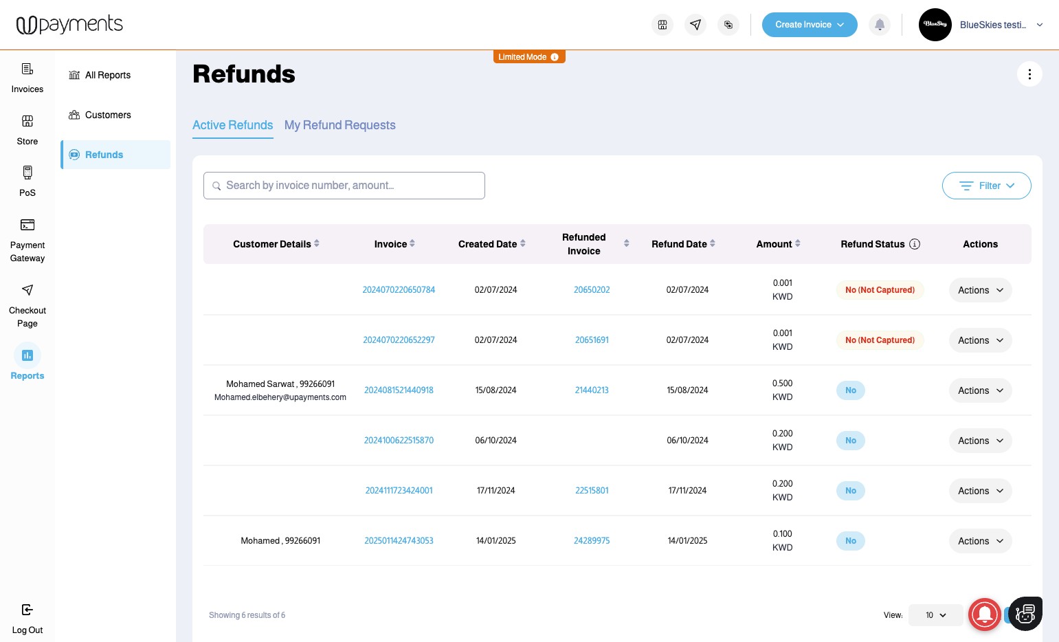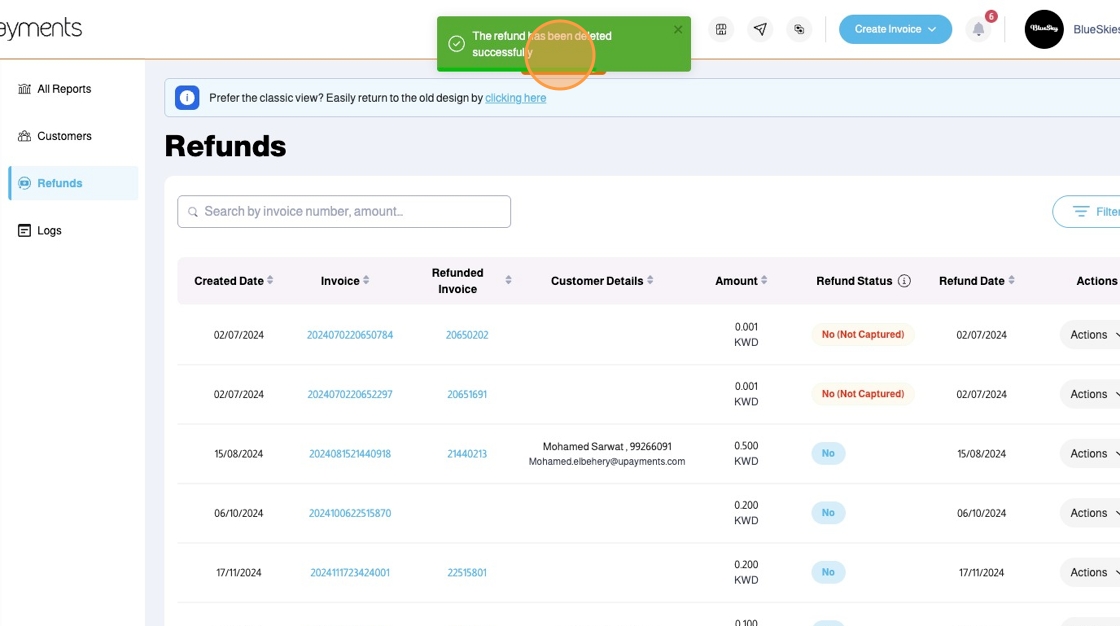You can refund invoices easily to your customers using UPayments Merchant Dashboard. The process helps you process refunds quickly and tracks the refunded invoices on the dashboard.