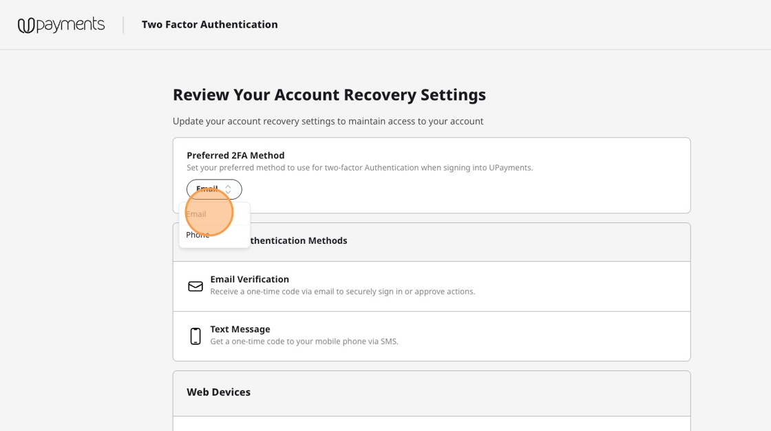 Your choice will determine the method that will be used when you log in to your account and require Two Factor Authentication.