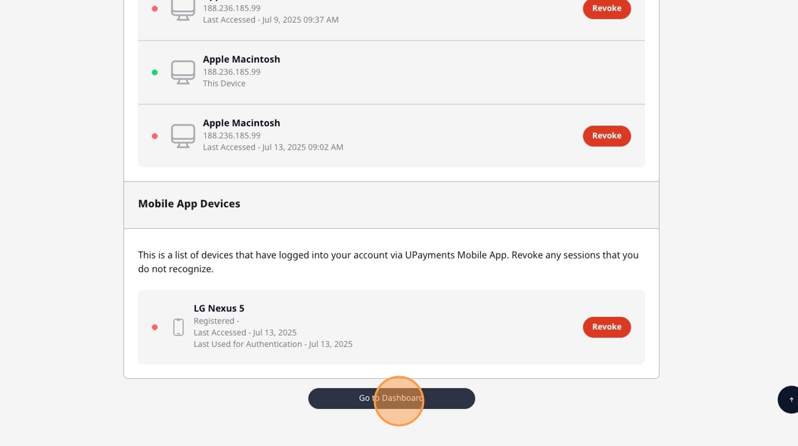 19. After configuring your Two Factor Authentication Settings, click Go to Dashboard to return to UPayments Dashboard